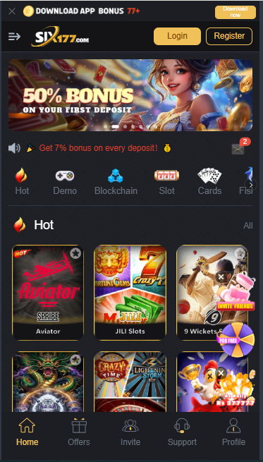 Six177 is an online gaming app which is free to download and install on your smartphone A platform which is offering you the best modern style casino games and sports betting games. The games you find in this app’s gallery are slots, cards, and casino games. Sports betting, fish games, and so many new e-sports are also here. Here, players can either go with their experiences or moods by choosing the best one for themselves.